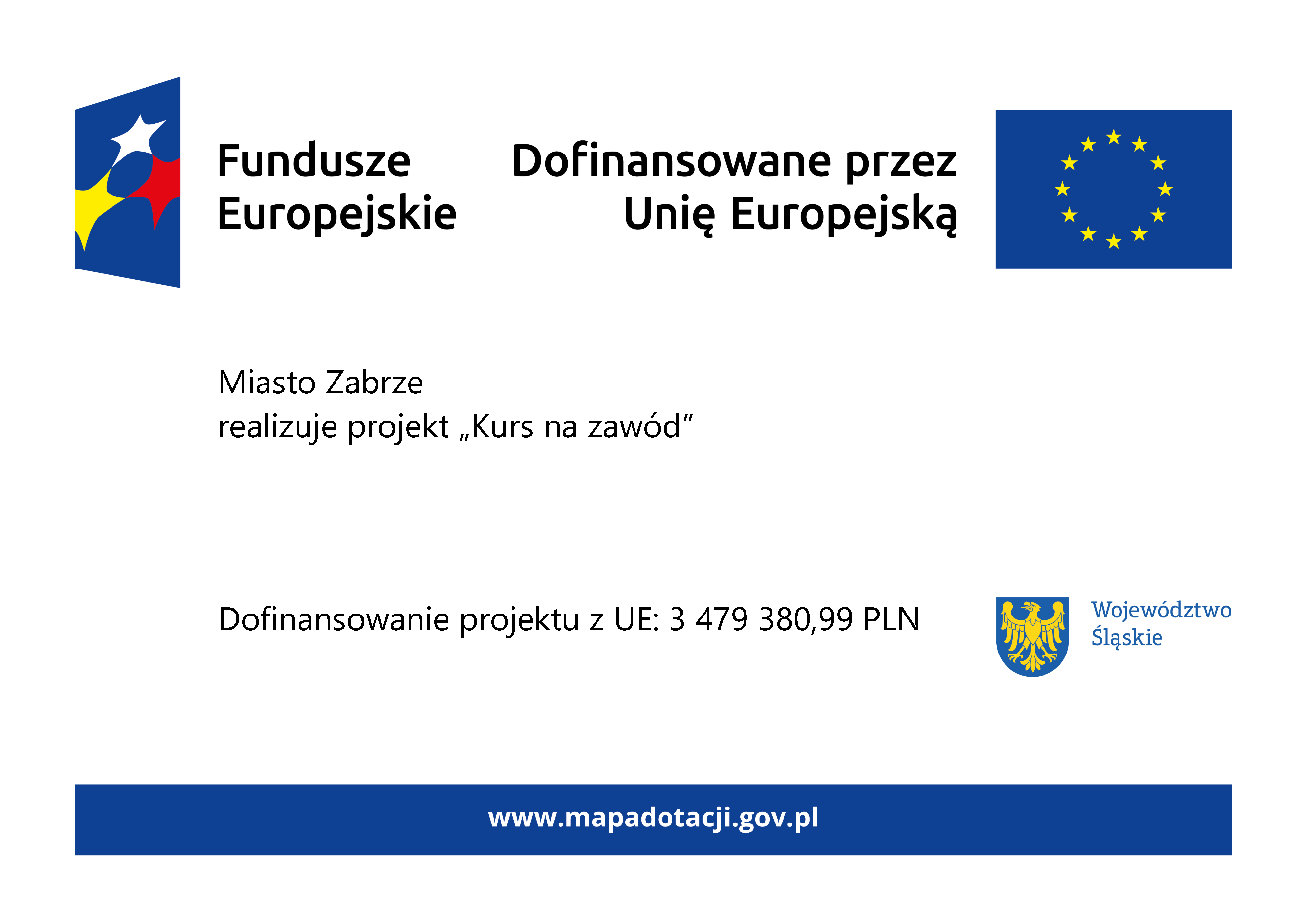 Z dniem 1 lipca 2025 roku Miasto Zabrze rozpoczęło realizację projektu: „Kurs na zawód” w ramach Programu Fundusze Europejskie dla Śląskiego 2021-2027 współfinansowanego ze środków Europejskiego Funduszu Społecznego Plus, Priorytet ESL.06.00-Fundusze Europejskie dla edukacji, działanie FESL.06.03-Kształcenie zawodowe.
