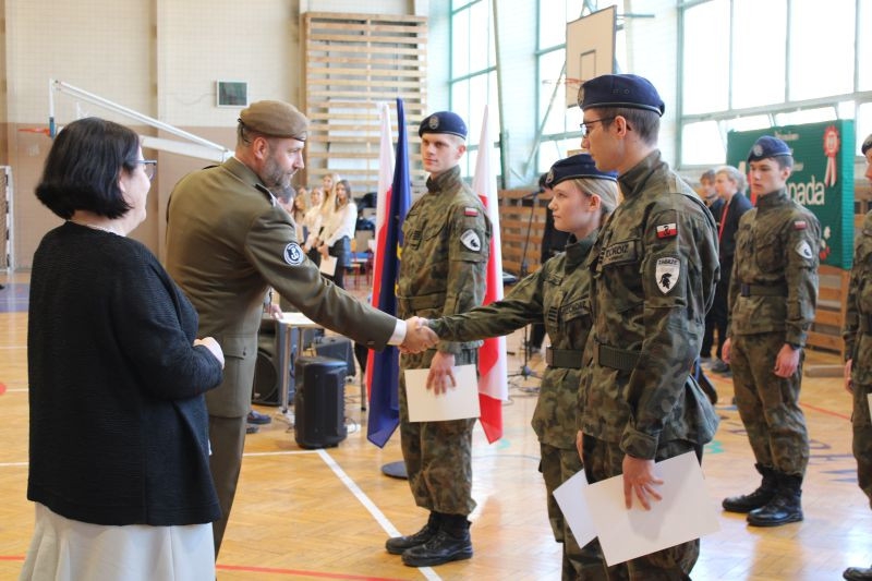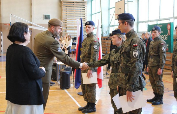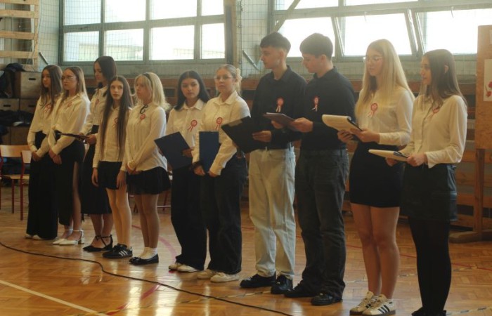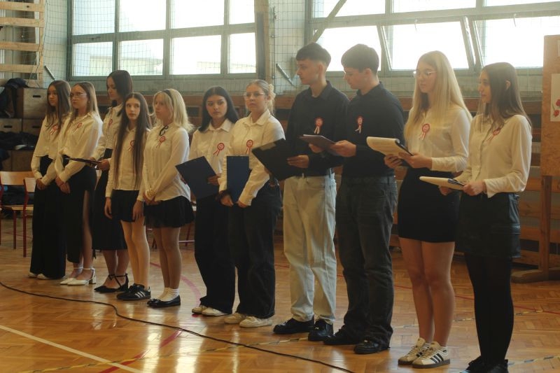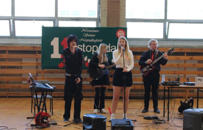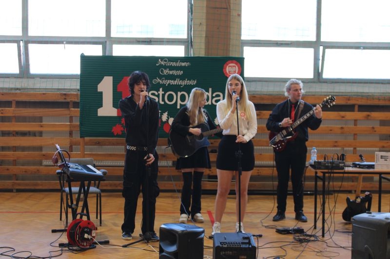 W piątek, 7 listopada 2025r. w naszej szkole odbyła się uroczysta akademia z okazji Narodowego Święta Niepodległości. Był to wyjątkowy moment wspólnego świętowania, refleksji nad współczesnym patriotyzmem i odkrywania, czym dzisiaj jest dla nas Polska. W części historycznej przypomniano najważniejsze wydarzenia prowadzące do odzyskania wolności, a prezentacja klas mundurowych podkreśliła ciągłość tradycji i szacunek dla służby Ojczyźnie. W części artystycznej uczniowie zaprezentowali m.in. utwory „Do prostego człowieka”, „Nie pytaj o Polskę” oraz „ Kocham wolność ". Motywem przewodnim uroczystości było przesłanie: Polska jest w nas –nie tylko w datach i wydarzeniach historycznych, ale w codziennych wyborach, w szacunku do drugiego człowieka, w naszej odpowiedzialności .