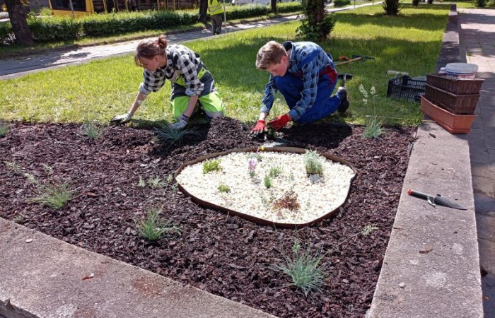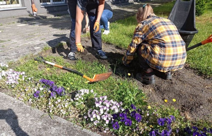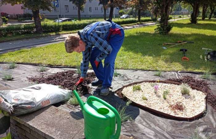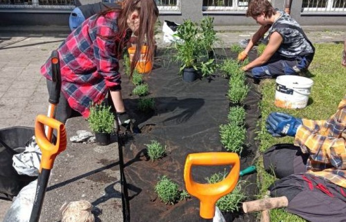 I zrobiło się ładniej przed wejściem głównym do budynku ZCKOiZ. A to wszystko za sprawą ciężkiej i wytrwałej pracy uczniów technikum architektury krajobrazu, którzy w czasie zajęć praktycznych realizowanych przez Centrum Kształcenia Praktycznego i Ustawicznego w Zabrzu, pod opieką Pani Marty Kot, nasadzili rośliny ozdobne: kostrzewę siną (Festuca cinerea Vill.), rojniki (Sempervivum L.) i goździki (Dianthus L.) z jednej strony a z drugiej lawendę wąskolistną (Lavandula angustifolia), jeżówki (Echinacea Moench) oraz rozplenicę japońską (Pennisetum alopecuroides). Teraz czekamy, aż wszystkie rośliny się dobrze ukorzenią i zaaklimatyzują do nowych warunków stanowiskowych. Wierzymy, że gdy wszyscy będziemy je pielęgnować, podlewać i dbać o nie to odwdzięczą się pięknym kwitnieniem. Dziękujemy wszystkim uczniom technikum architektury krajobrazu, że dbają o zieloną przestrzeń wokół naszej szkoły.