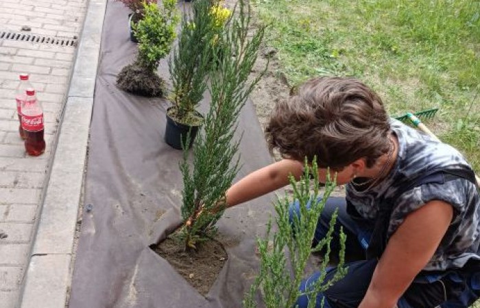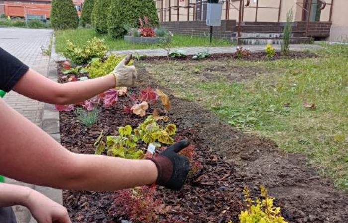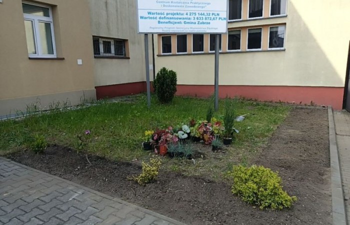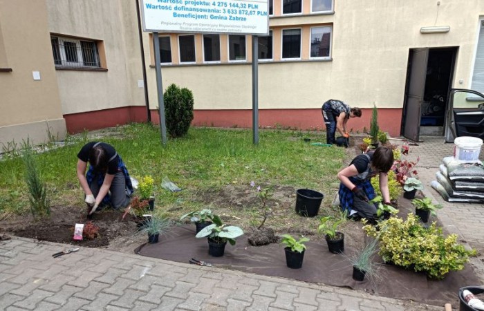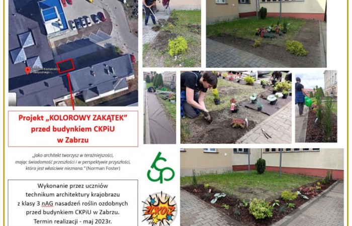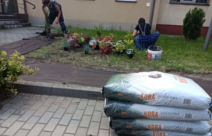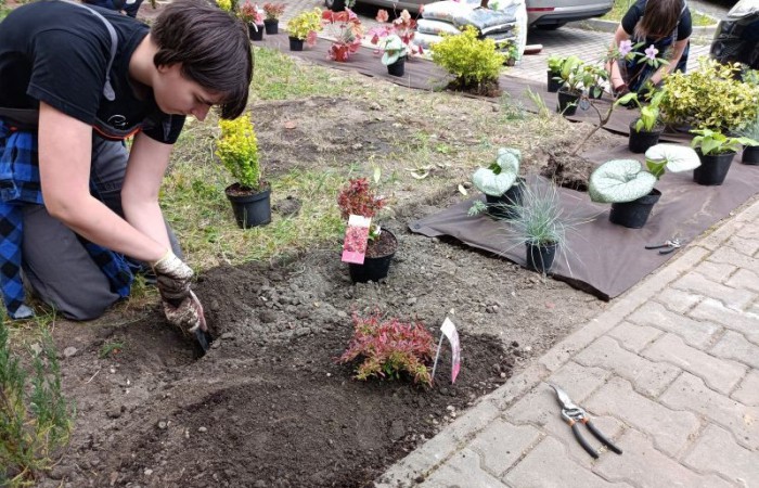 Nasi uczniowie technikum architektury krajobrazu z ZCKOiZ lubią realizować projekty w terenie. Tym razem powstało kolorowe nasadzenie z roślin ozdobnych przed wejściem do budynku Centrum Kształcenia Praktycznego i Ustawicznego w Zabrzu, gdzie uczniowie realizują zajęcia praktyczne pod opieką Pani Marty Kot. Projekt „Kolorowy zakątek” to większe przedsięwzięcie, którego ostatecznym celem jest stworzenie przyjaznego miejsca odpoczynku w czasie przerw między zajęciami dla uczniów i słuchaczy CKPiU w Zabrzu. W tym roku pojawiły się nasadzenia z: jałowca skalnego (Juniperus scopulorum), funki (Hosta), żurawki (Heuchera), brunery (Brunnera), berberysów (Berberis L.) i kostrzewy sinej (Festuca cinerea Vill.). Podłoże pod rośliny zostało zaprawione ziemią żyzną. Teraz czekamy, aż wszystkie rośliny się dobrze ukorzenią i zaaklimatyzują do nowych warunków stanowiskowych. Wierzymy, że gdy wszyscy będziemy je pielęgnować, podlewać i dbać o nie to odwdzięczą się pięknym kwitnieniem. Dziękujemy wszystkim uczniom technikum architektury krajobrazu z ZCKOiZ, że dbają o zieloną przestrzeń wokół CKPiU w Zabrzu. Nasadzenia powstały w ramach projektu ekologicznego „Eko-skwerek pod sosnami”, na którego fundusze pozyskano poprzez ZARZĄDZENIE NR 310/WO/2023 PREZYDENTA MIASTA ZABRZE z dnia 21 kwietnia 2023 r. w sprawie przyznania środków finansowych na dofinansowanie w 2023 roku zadania pn.: "Edukacja ekologiczna - promocja ekologii" w szkołach i placówkach oświatowych prowadzonych przez Miasto Zabrze.